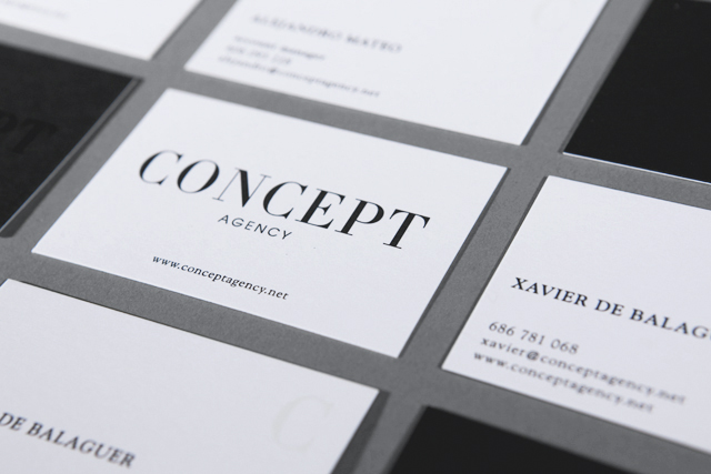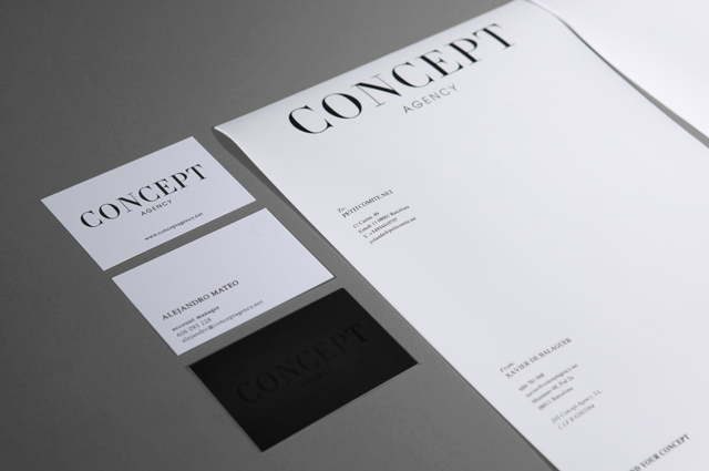 La idea que propuse era que la identidad de Concept Agency recogiera los valores de los momento álgidos de la moda, en los que el lujo y el glamour no estaba reñido con la sencillez y la elegancia. Para ello busqué referentes con un marcado caracter «moda» que resultaran atemporales, como las revistas Vogue o Harper’s Bazaar. Decidí huir del color y de la fotografía, tan característica en la comunicación de moda, ya que quería dar un mensaje a los clientes de Concept Agency que serían ellos los que deberían llenar esa «cabecera» de contenido.